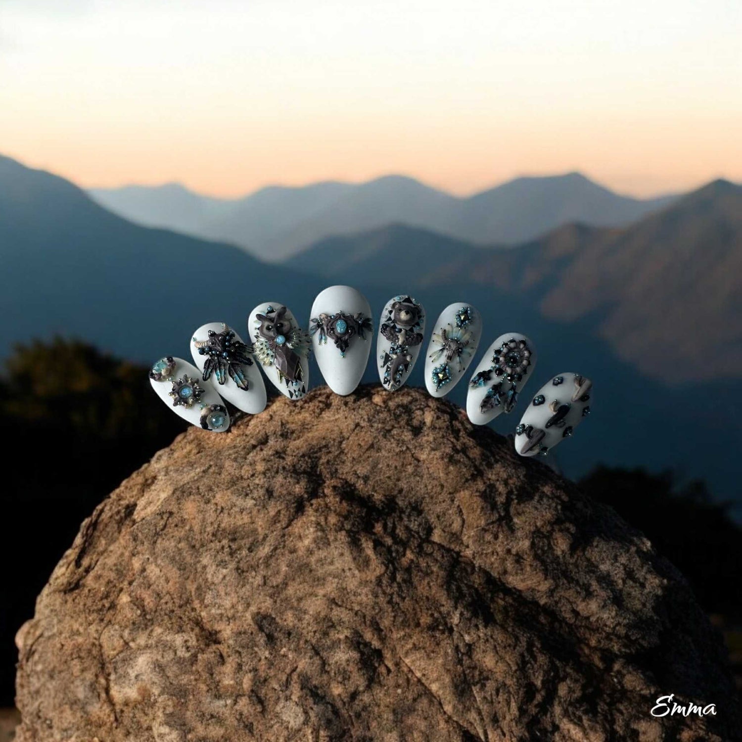 Je me spécialise dans les ongles au style bling bling, mais je prends autant de plaisir à réaliser des styles délicats et classiques.